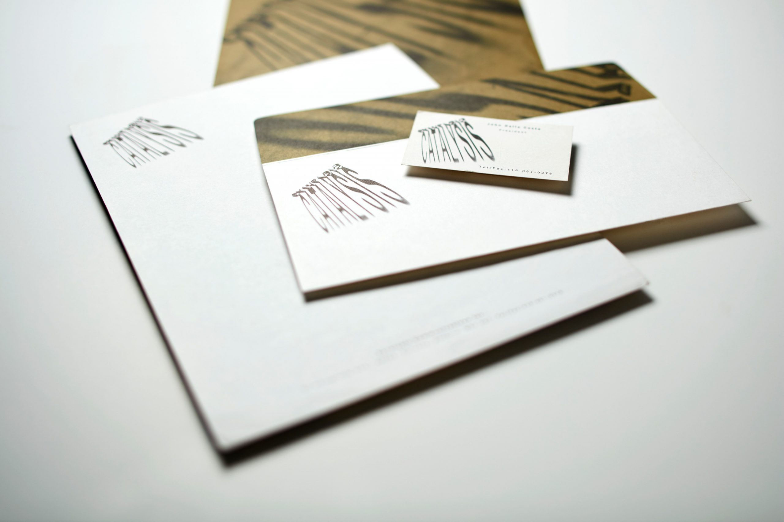 Catalysis is an action between two or more persons or forces, initiated by an agent that itself remains unaffected by the action. The agent and catalyst here is the Canadian advertising practitioner and consultant John Dalla Costa. The identity was designed to reflect and project his expertise in working with senior executives from blue-chip companies on organizational renewal, brand equity planning and relationship management.