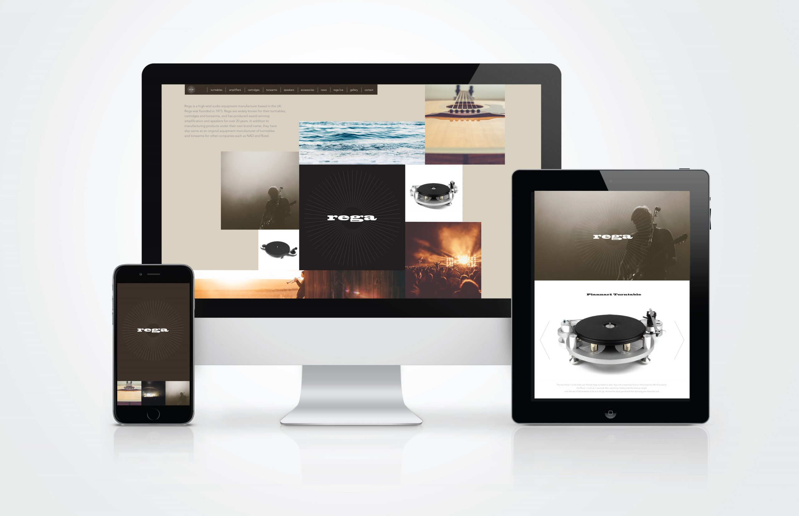 UK-based Rega Research is a manufacturer of audio equipment, best known for its award-winning speakers and amplification systems. The brand name is based in the founders’ initials and the new identity reflects how their technology and aesthetic combine to create an unmatched audio experience.